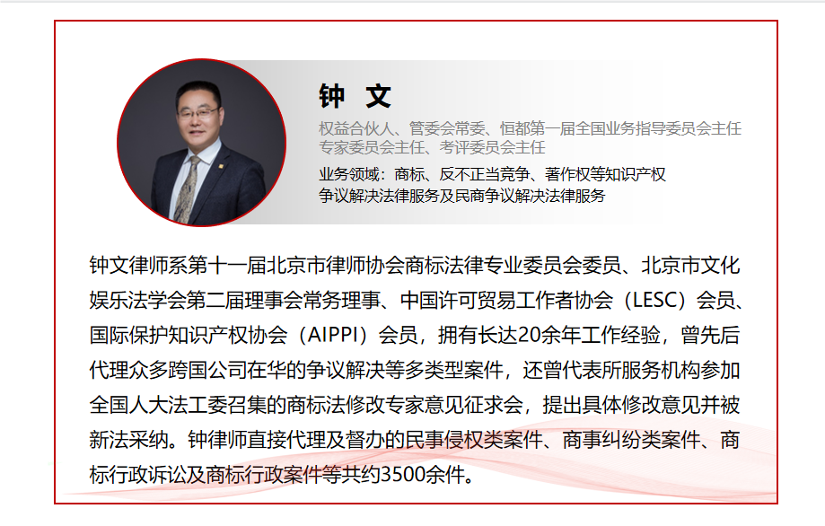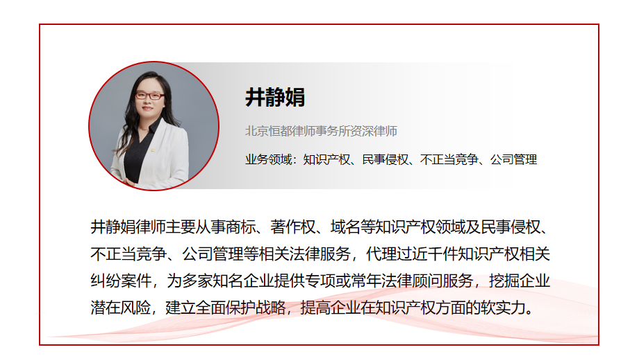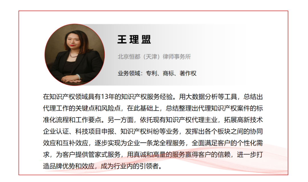 喜訊!北京恒都律師事務(wù)所于2023年8月成功進入天津河西知識產(chǎn)權(quán)專家?guī)?,其中四位律師入法律事?wù)類庫分別是:鐘文、張榮梅、文萁、井靜娟,一位專利代理入專業(yè)技術(shù)類庫:王理盟。