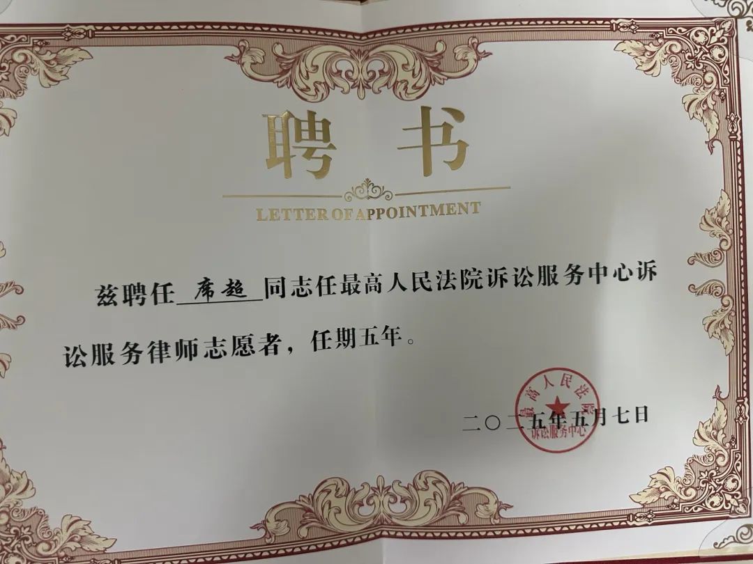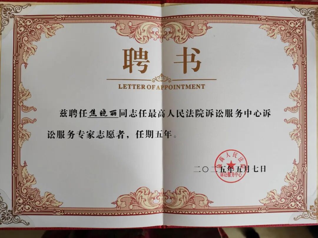 表彰榮譽(yù):最高人民法院訴訟服務(wù)專家志愿者
